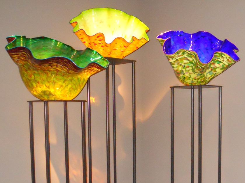 I enjoyed the variety of textures of the greens. The Chihuly pieces and the basket were a nice contrast to the landscapes.
