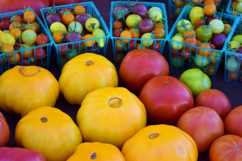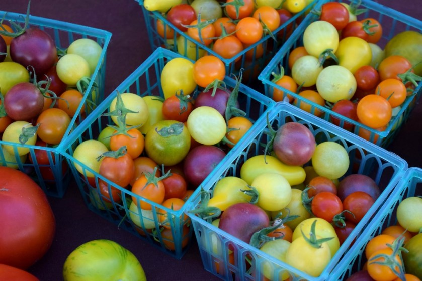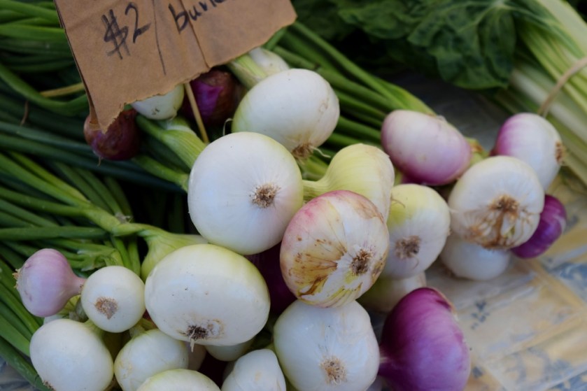 Here’s my entry for this week’s photo challenge, the organic shapes of farmer’s market bounty gathered into a modicum of order.