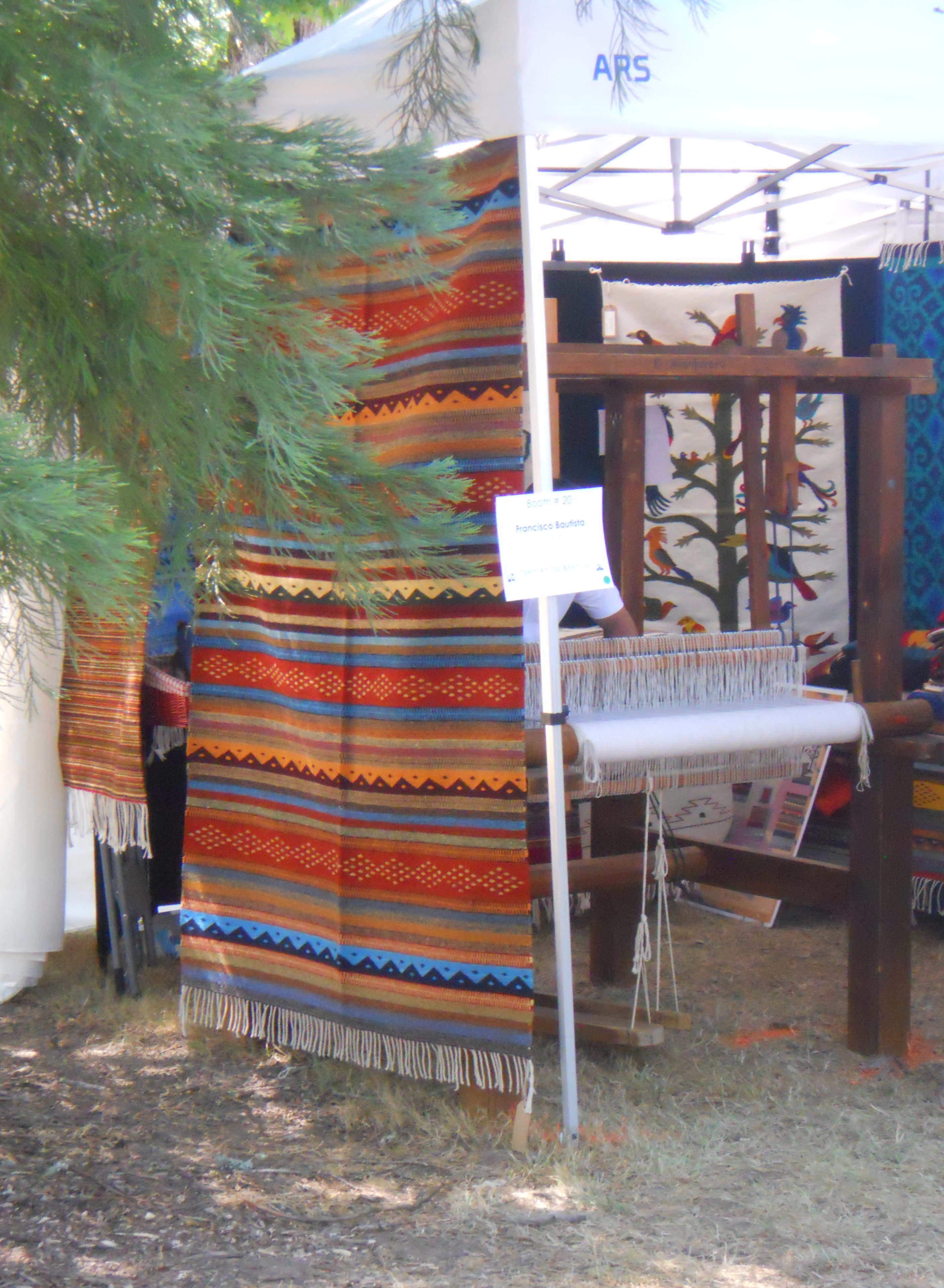 This year I was surprised to see more fiber artists. Perhaps that’s because I am now more aware of the fiber arts. Check out this fascinating embroidered work: Yan’s Design – Handmade Embroidery Art (link leads to video of the work being done). She paints on silk and then hand embroiders the detail. Amazing! Also lovely was the weaving by Bautista Weaving: