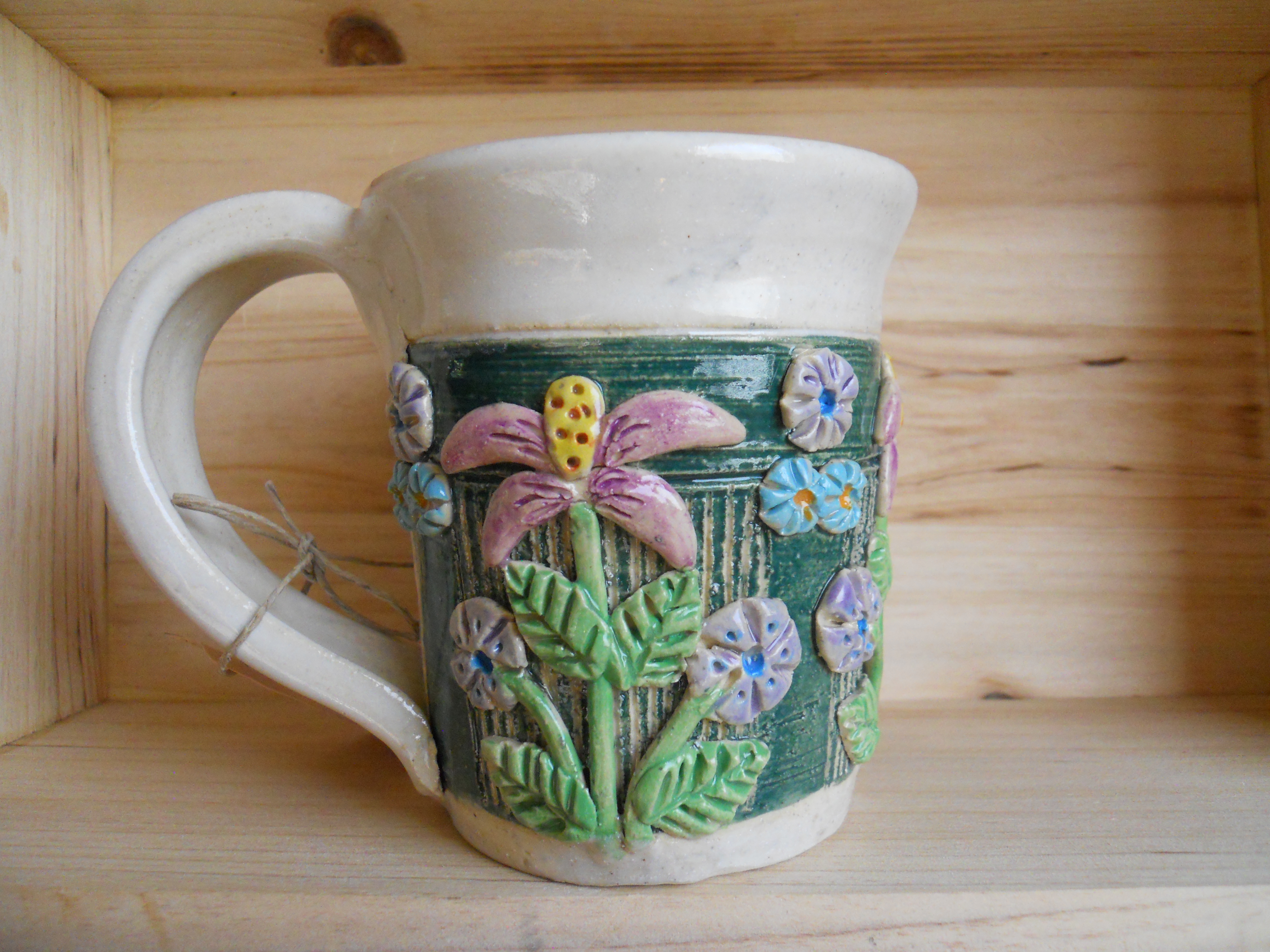 I also found this sweet coneflower mug made by Fishbowl Pottery. I just love it and think the design is perfect! I love the colors and the sculptural texture of the flowers. Love!