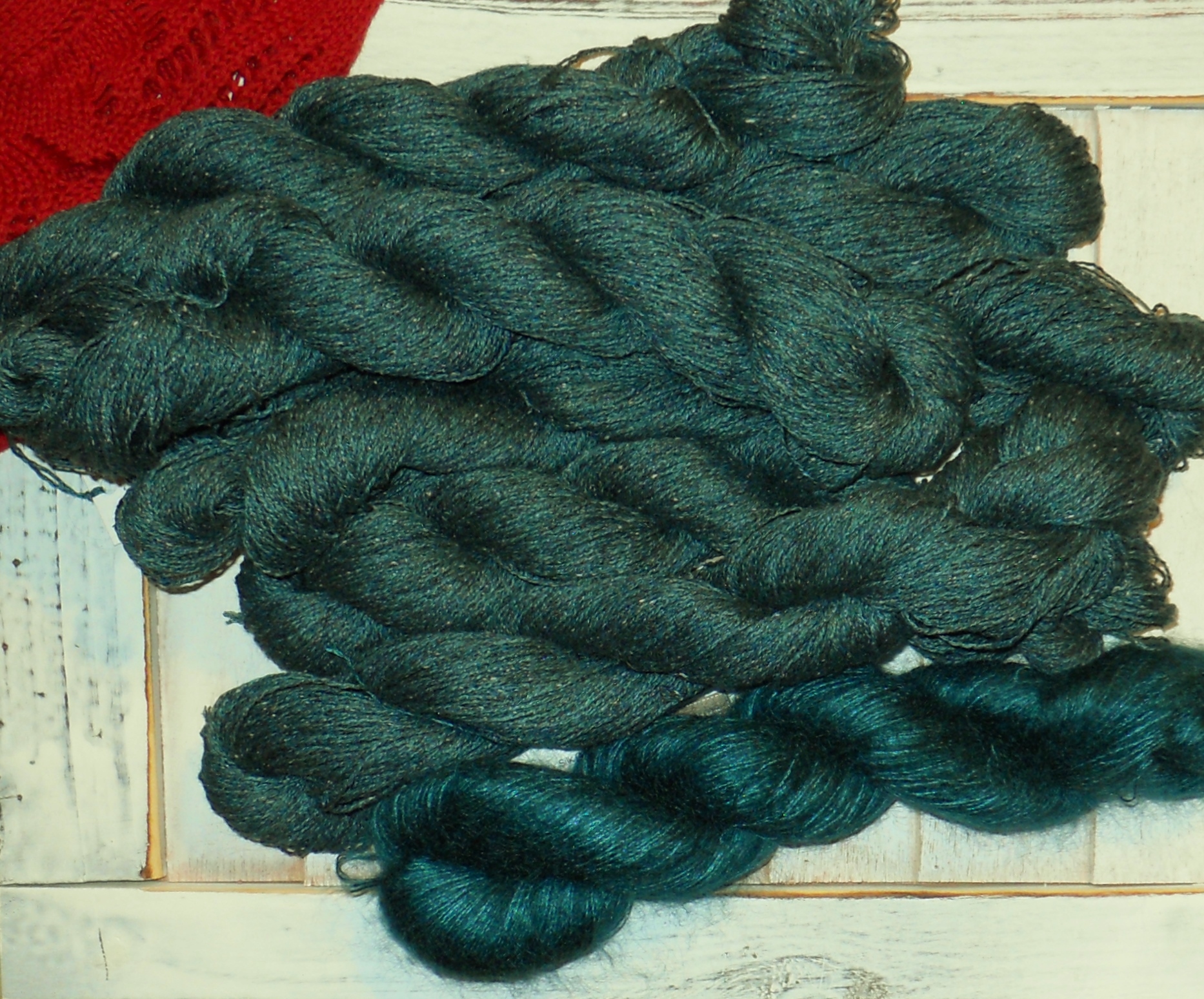 These yarns are also set aside for sweaters, perhaps with a lace or cable panel. I couldn’t decide on color, so picked up both:
