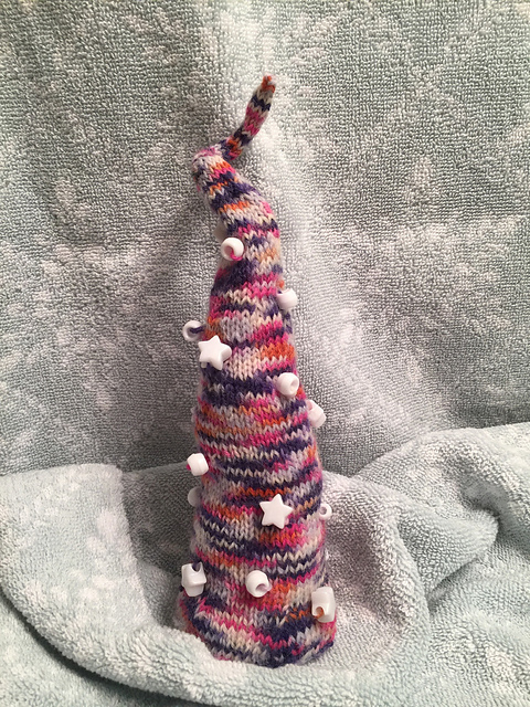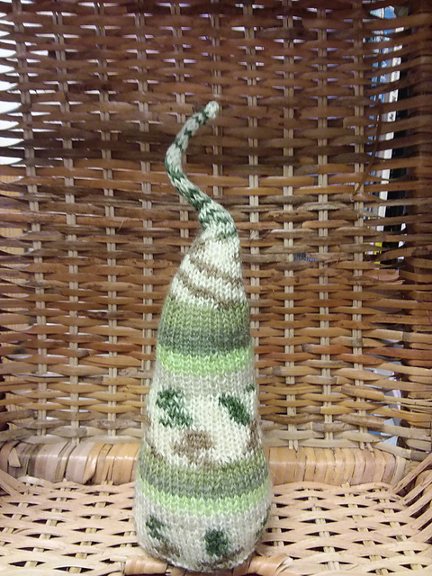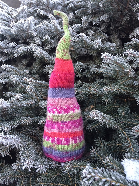 Wee Pumpkin is knit flat, and it is reaaalllly tiny, about an inch tall and an inch-and-a-half in diameter. It would be fun to make a wee pumpkin garland! Published 2018.