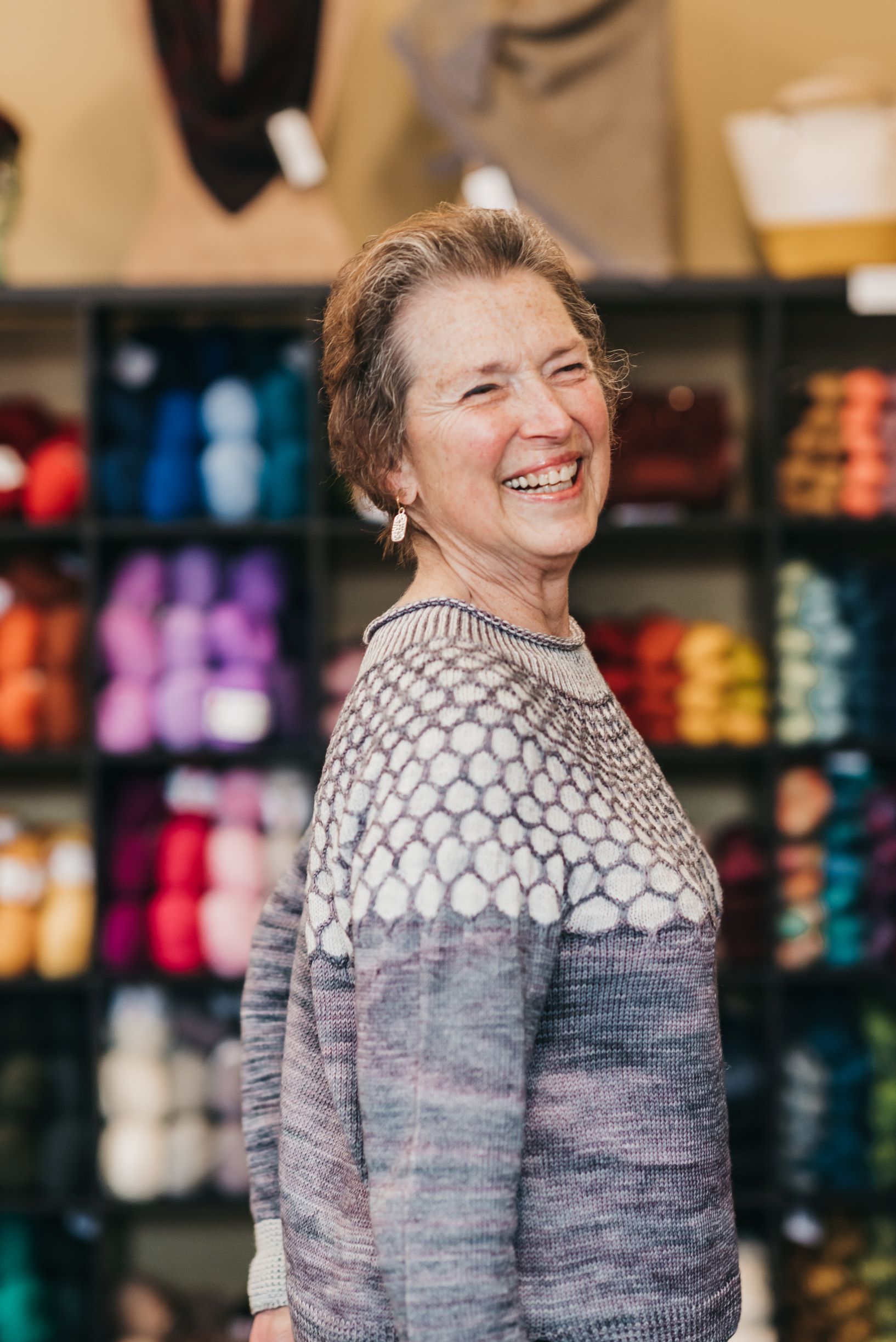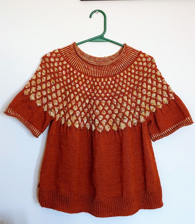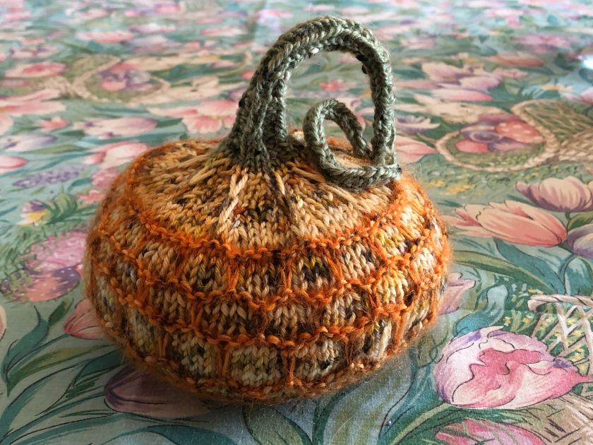 While I have been struggling with the 2023 pumpkin design, although I think I’m gaining on it, I found this gorgeous yarn yesterday at our local yarn shop, Wild Knits Salem. I believe it wants to become a cowl that can be made in either of these weights of yarn – using some of the stitches from Hollywood and Vine.