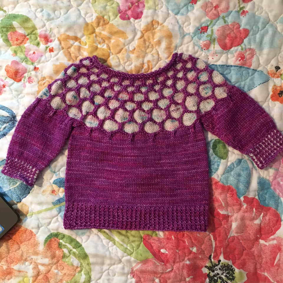 The last bit of news is that I’ve designed a Little Ethereal. It’s currently in tech editing, and when it is through that process, it will be ready for test knitting. I’ll be looking for a few test knitters who have a little one available who can try on the sweater and also maybe provide some great pictures – because I don’t have any little ones nearby and no grands yet. Additionally, I will be looking for testers who can knit this pretty quickly and who have previously completed test knits. If this sounds like you and sounds like something you would like to do, please email me at knitequalsjoy@gmail.com. I wanted to give my fabulous knitting friends first stab at this, and then will offer the test on Yarnpond. The sizes are 0-6 mo, 6-12 mo, 1-2 yr, 2-4 yr, 4-6 yr, 6-8 yr, and 8-10 yr, and it is knit in fingering weight yarn.