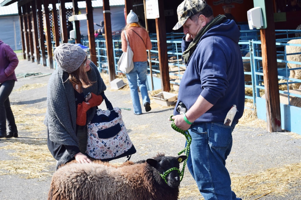 Arriving in RhinebeckFall is in the air at RhinebeckFair food – while I didn’t have any of this, I did have maple cotton candy – delish!Happy RhinebeckersPassport Mitts in the wild! Made by Meg, Jen, and AlexSunday morning drive to Rhinebeck4-H dad talks to Jen about raising Shetland sheep. They are social animals and have to be sold in groups of two or more – at least in NY.This little guy was about six months old. He was so cute!