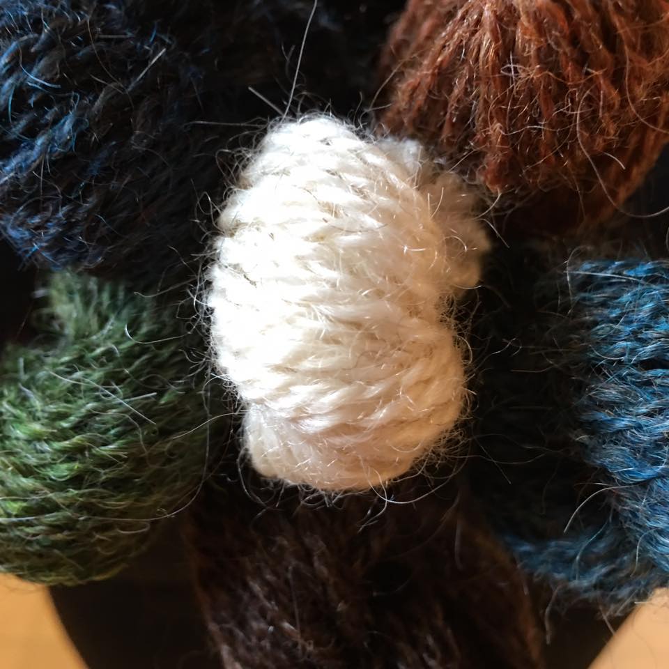 Reports I’ve read state that about 30,000 people attended on Saturday. It was a bit crowded for me, but good for people watching and scoping out the yarn. Sunday was much more comfortable, the lines were much shorter and you could move around in the artists’ booths. I made no purchases on Saturday and none until about the last hour we were there on Sunday. I was sorely tempted all weekend by qiviut, the fine undercoat of the muskox and the softest fiber I’ve ever touched, but finally decided against it. I love locally sourced yarn, and that is mostly what I ended up with.