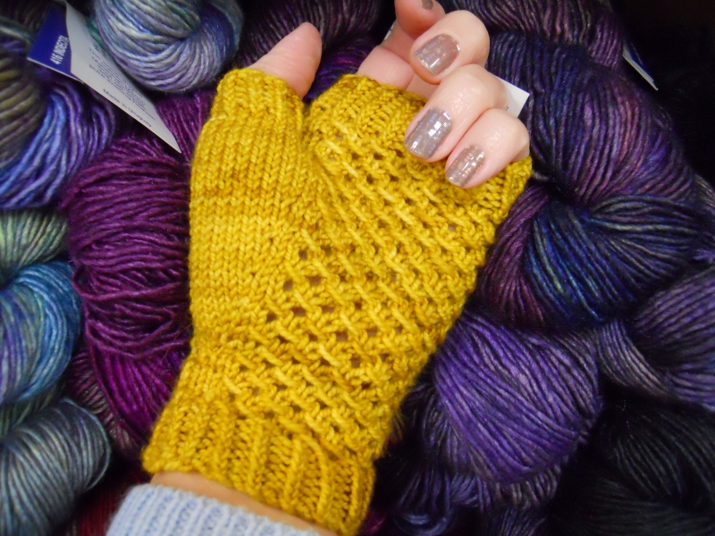 Sizes: Women’s Small/Medium, (Large). Pattern is worked with negative ease for a snug fit.