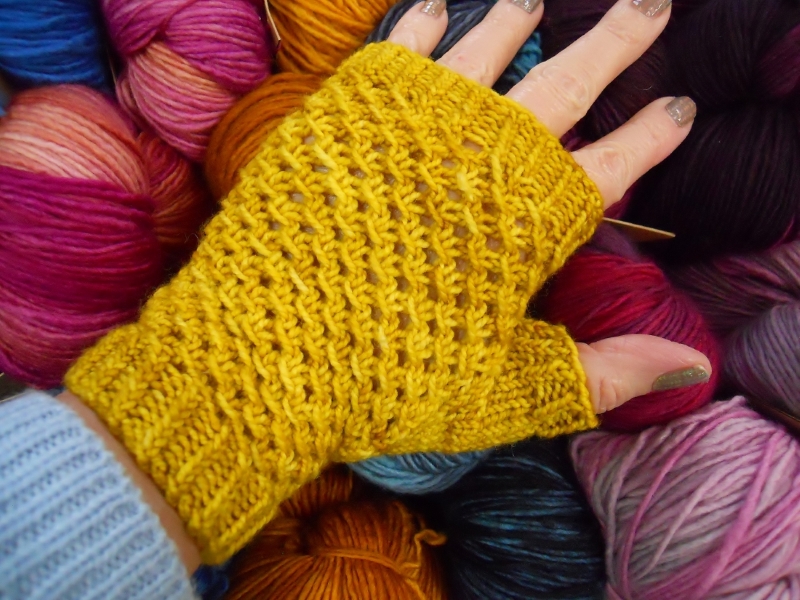 When sunlight filters through water to the river rock below, there is an enchanting dance of form and color. So too does this simple slip-stitch pattern showcase the play of color across texture. Solid, variegated and even self-striping yarns shine in these beautiful mitts.