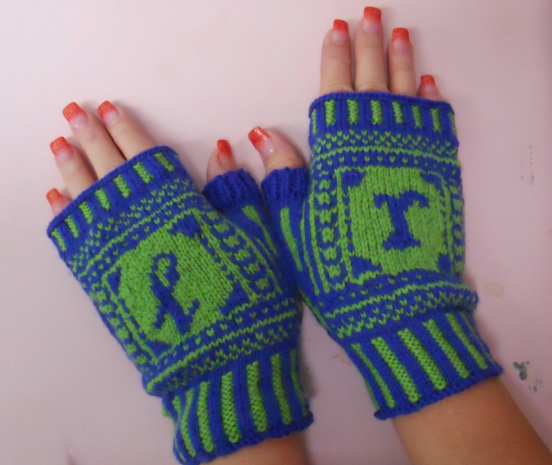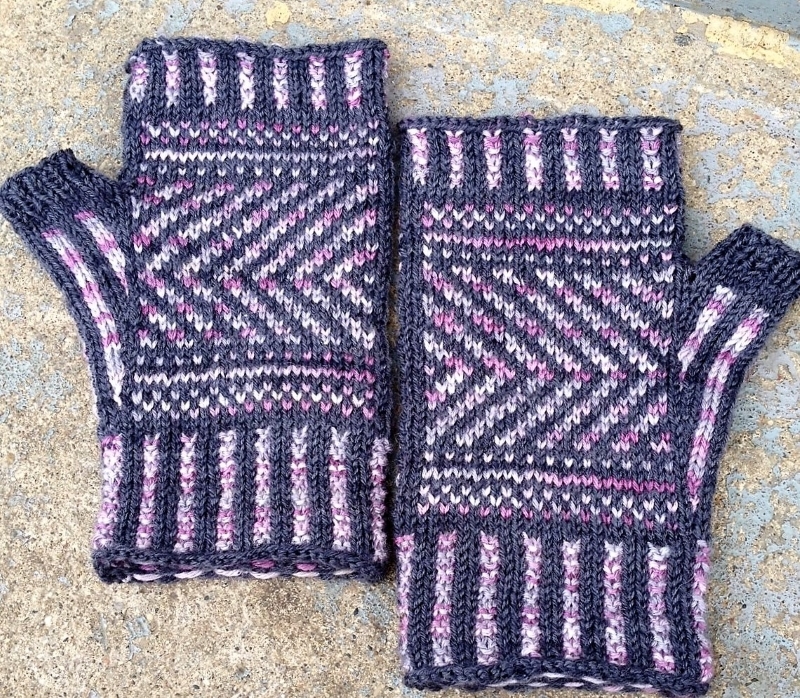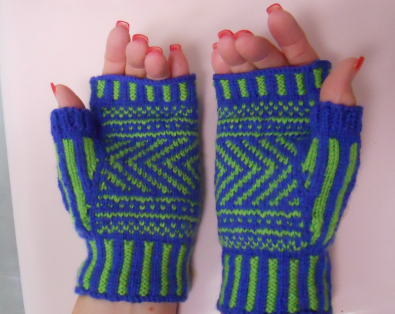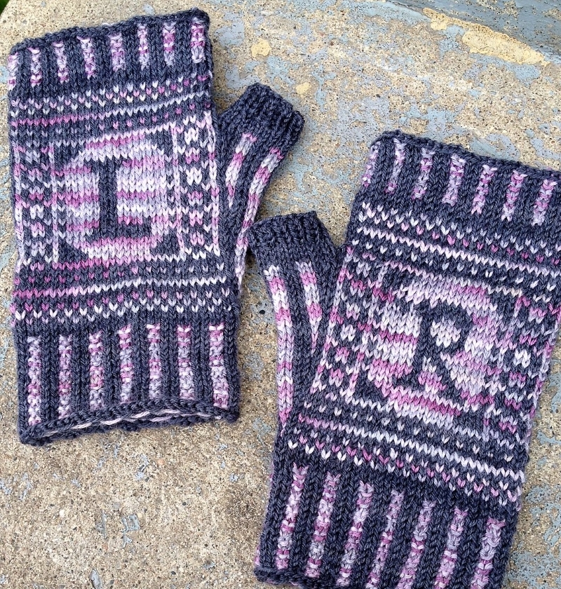 My Sense of Direction Mitts, a whimsical, tongue-in-cheek design. Pattern includes both charts and written directions and includes charts for both upper and lower case L and R.
