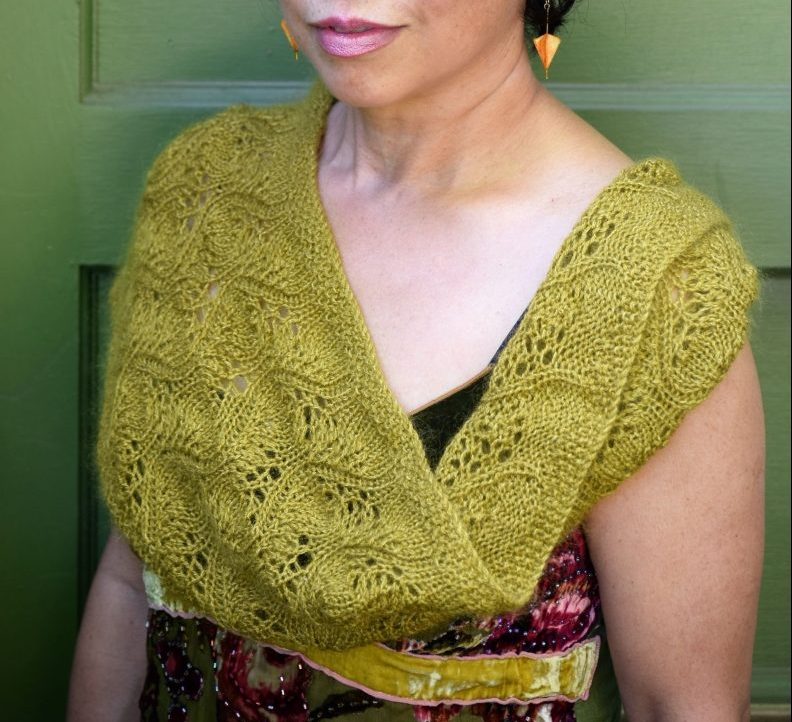 Salishan Cowl is a fabulous accessory for dressing up any outfit. The elegant lace design is surprisingly easy for lace. Appropriate for beginning to more advanced lace knitters, it contrasts a structured edging with a graceful and airy lace pattern.