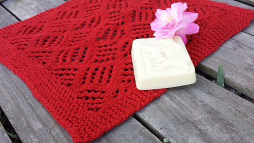 Missy’s Spa Cloth is a luxurious, pampering facial cloth. The lace stitches create a lovely design with the practical result of a fabric that provides gentle cleansing and exfoliation. Made in the suggested yarn, Cascade Yarns Ultra Pima Fine, it can be machine washed and dried.
