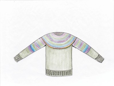 Therefore, this design is available for sizes 35 and 38. The actual measurement of the sweater is 37 ¾ in. (39 ½ in.) at the bust, and could also work for those in the 32-34 in. range, if a looser fit is acceptable. The pattern uses fingering weight yarn on size 4 needles. It is written to use 10 colors, but fewer colors may be used. It also could be a stash buster.