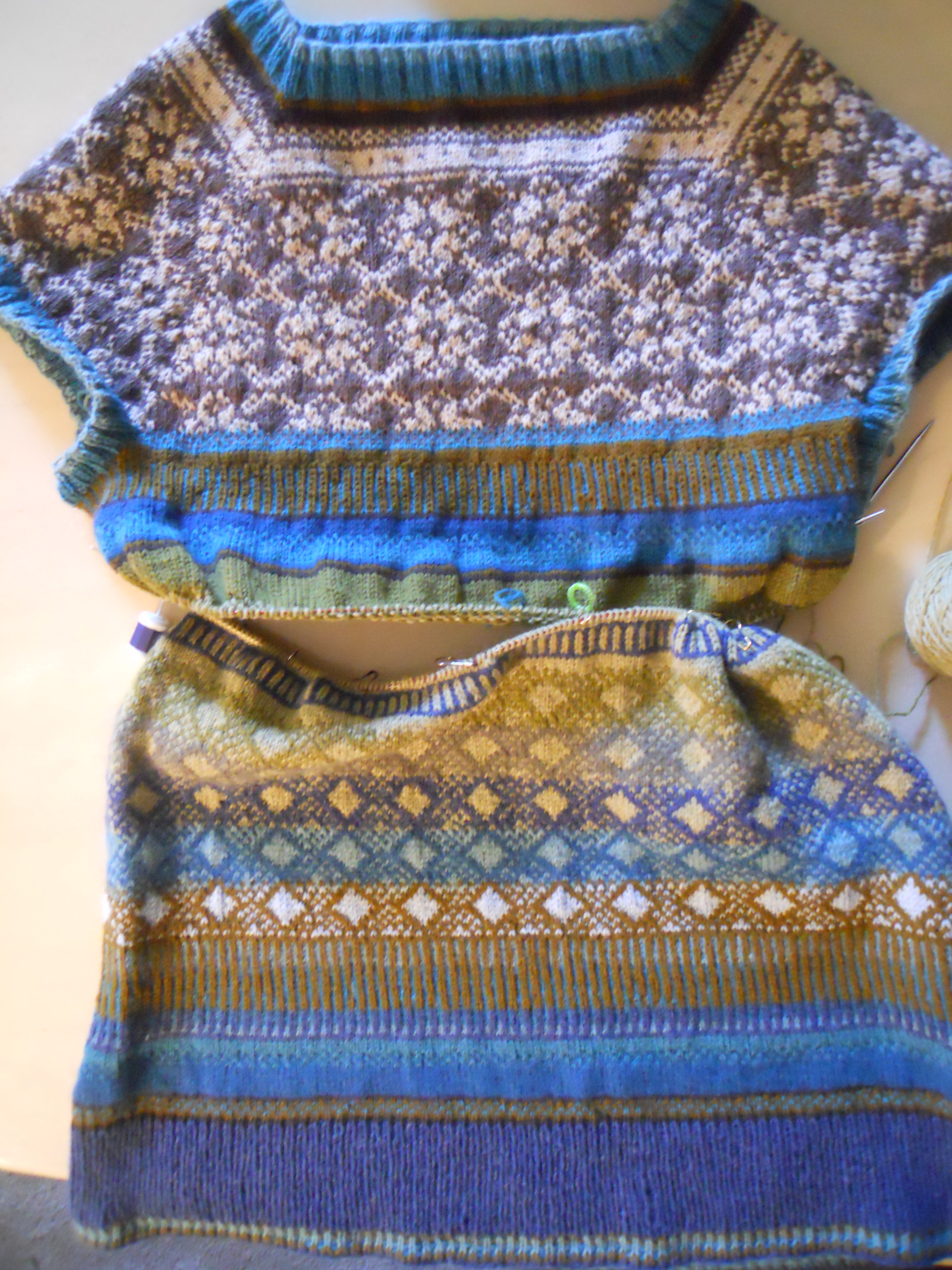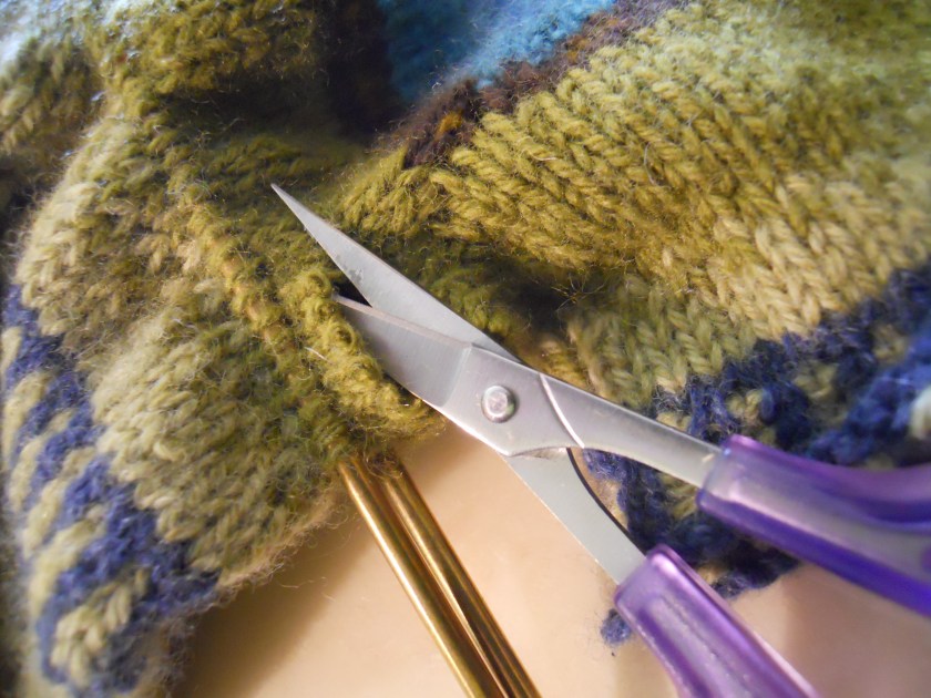 Last week I girded up my loins, picked up my scissors, and cut my sweater in half. Done with careful preparation, I survived, the sweater survived – and in fact it was much improved by the process.