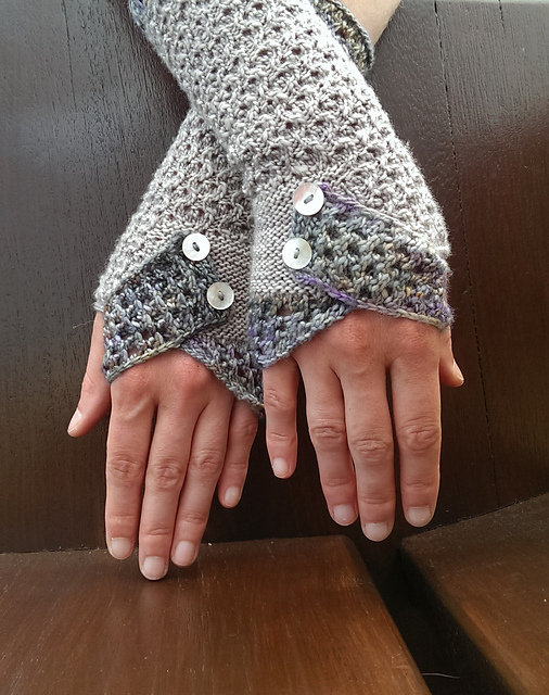 New to me is designer Liz Corke. I found these fingerless mitts, and I think they are so delicate and elegant. I’m looking for just the right fingering weight in my stash. These are the Dromanach Mitts.