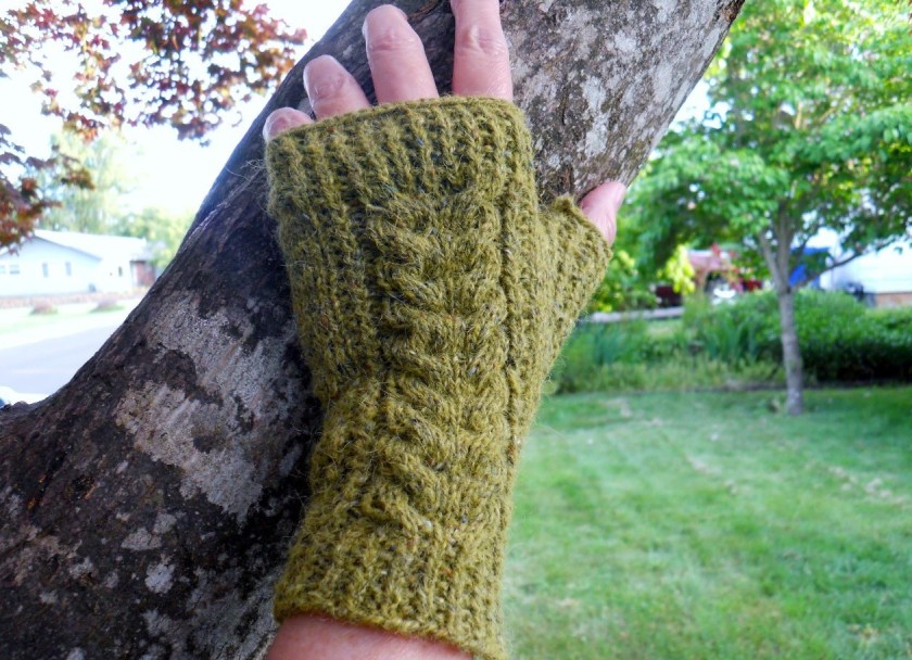 The second FO I have to share today is my first pair of Passport Mitts! I’ve posted here before about this pattern and the designer, but I want to say a little more. Specifically, if you’re looking for an awesome and supportive group of people to “hang out” with on ravelry, please go check out the group at Carol E. Herman Designs. Carol (cehermanator) and many of the group members have been so welcoming to me that, even though I hadn’t yet knit any of her designs, I still felt comfortable just jumping in and chatting with people. There’s currently a KAL going on for the Passport Mitts. It’s the first time I’ve participated in one, and it’s been really fun so far! It just started a couple of days ago so there’s plenty of time to come join in if you’d like. There’s great chatting, camaraderie…