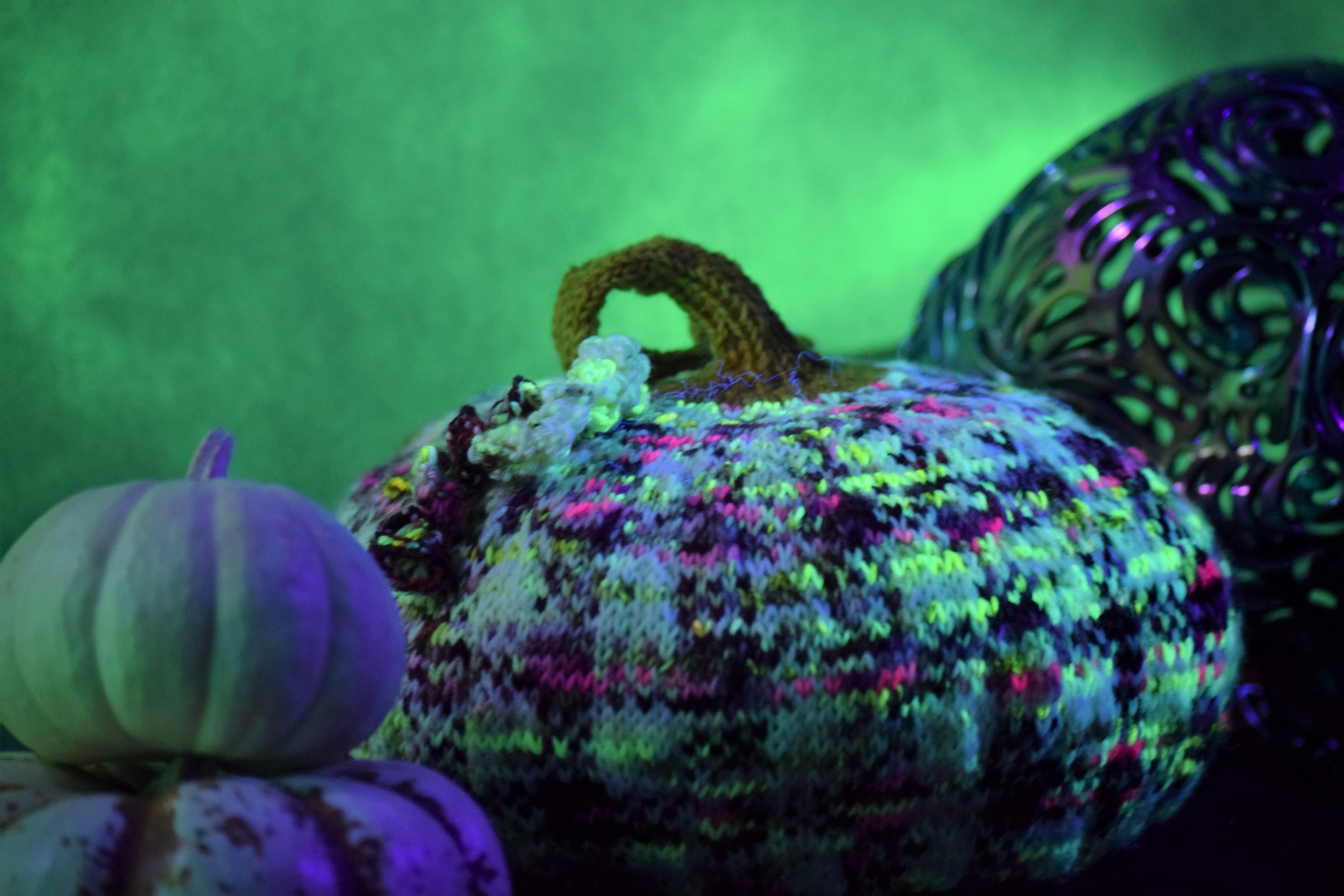 I made the pumpkin using Alexandra’s Crafts Dark Side of the Moon in Saffron Spice and Madelinetosh Tosh Merino Light in Saffron. They were lovely yarns to work with!