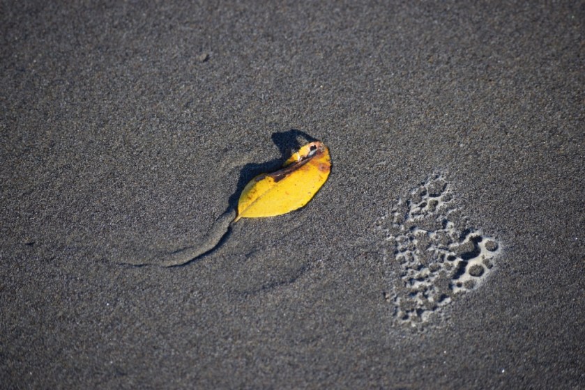 This challenge really struck a chord with me. The evanescence – fleeting existence – of the tableaus I find on the beach is part of their charm and attraction for me. Here are a few more Oregon Coast still lifes: