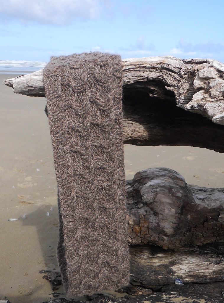 When I returned to Gleneden Beach the following February to photograph the Salishan Cowl for the completed pattern, I was reminded again why this place had inspired this design. The organic, curved shapes were everywhere, from the clouds in the sky to the patterns in the sand.