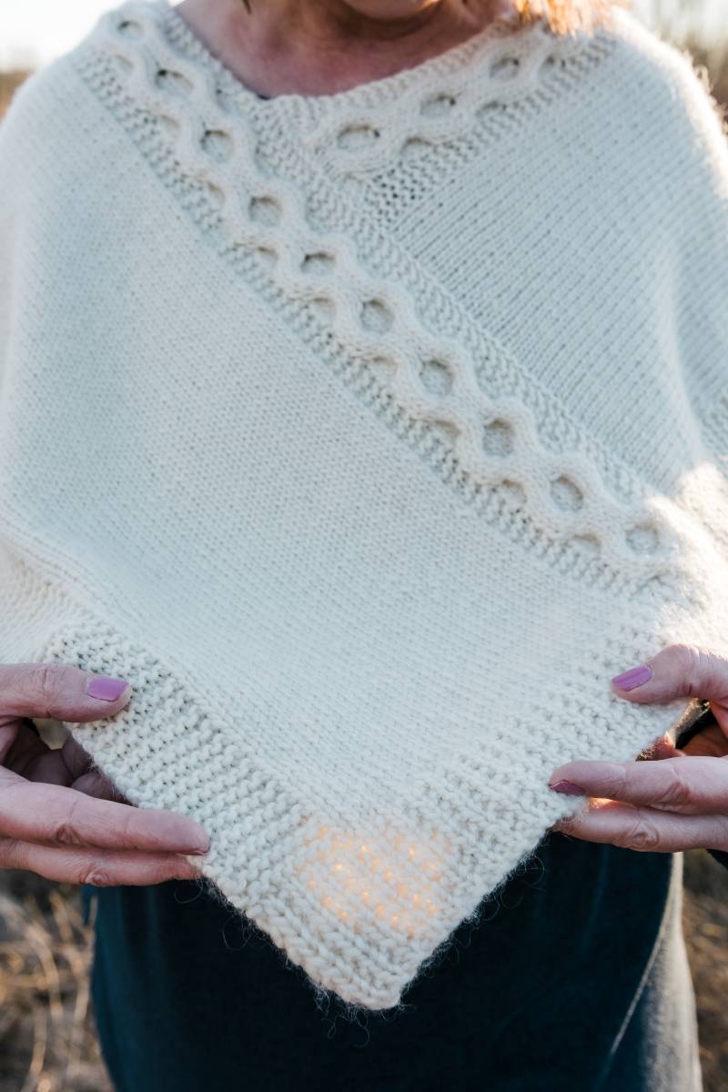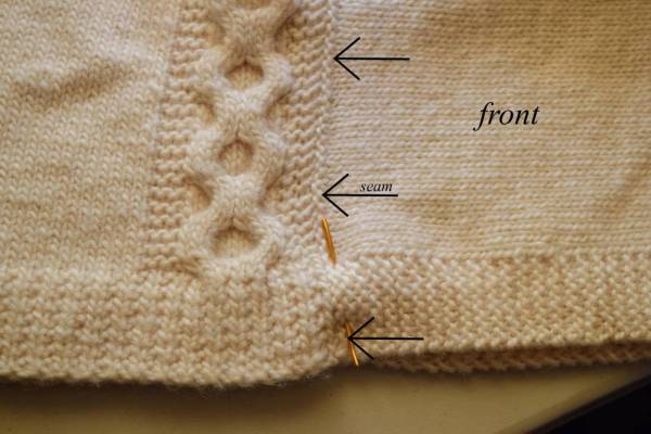 Welcome to the Willow Poncho seaming tutorial. This seam uses the Mattress Stitch, and while this tutorial is not specifically about how to do the Mattress Stitch, it is about how to grab the stitches when your edges contain both stockinette stitches and garter stitches.